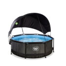 EXIT Black Wood Pool ø244x76cm mit Filterpumpe und Sonnensegel - schwarz
