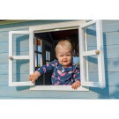 In dem EXIT Loft 150 Holzspielhaus in der Farbe blau brauchen sich Kinder keinen Tag zu langweilen. Dieses Holzspielhaus steht auf den Boden und hat einen Anbau der sowohl links als auch rechts am Spielhaus befestigt werden kann. Die Spielhäuser sind durch die vormontierten Bestandteile einfach aufzubauen. Typisch für das EXIT Loft 150 Holzspielhaus ist das klare skandinavische Design mit schönen weißen Rahmen. Dieses Spielhaus von EXIT Toys steht sicher nicht schlecht im Garten!