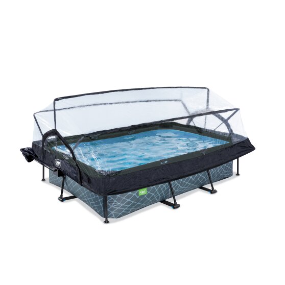 EXIT Stone Pool 220x150x65cm mit Filterpumpe und Abdeckung und Sonnensegel - grau