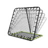 Der EXIT Tempo Omni-Trainer hat eine grüne und eine schwarze Seite die einfach in verschiedenen Winklen verstellt werden kann. Die grüne Seite (71 x 112 cm) hat ein feinmaschiges Netz und sorgt für einen harten Sprung. Wirf oder schieß den Ball in das Netz und stelle den Omni-Trainer so ein, dass der Ball auf die gewünschte Art zurückprallt. Bei der schwarzen Seite (119 x 130 cm) des Omni-Traineres von EXIT Toys werden standardmäßig zwei Netze mitgeliefert, ein feinmaschiges Netz und ein grobmaschiges Netz damit du deine Trainingsmethoden abwechseln kannst.