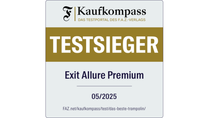 Das EXIT Allure Premium Trampolin wurde im großen Vergleichstest von Kaufkompass zum besten Trampolin 2025 gekürt. Von den 33 getesteten Trampolinen ging das Allure Premium als klarer Sieger hervor. Der stabile Rahmen, die langen doppelt konischen Federn und das klare Design sorgen laut den Testern für ein Sprungerlebnis, das kaum zu übertreffen ist. Dieses preisgekrönte Trampolin verbindet Qualität mit Sicherheit und ist damit eine der beliebtesten Entscheidungen für Familien.